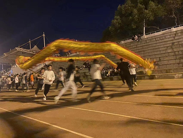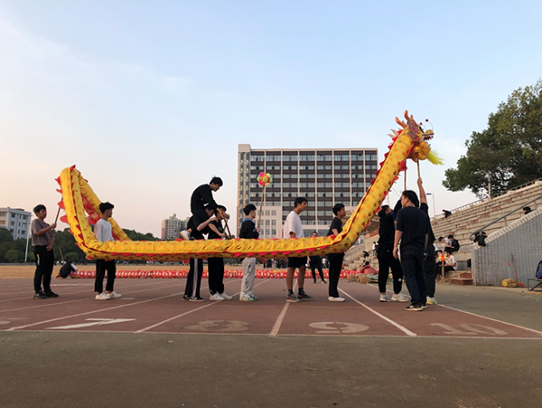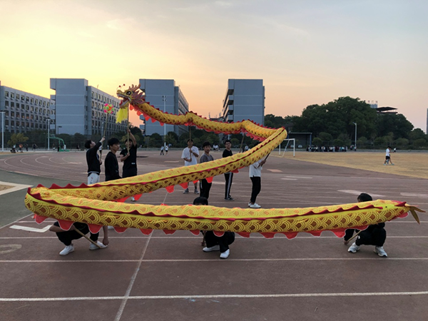 本網(wǎng)訊 近期,學(xué)院田徑場傳來陣陣鑼鼓聲,四條金燦燦的舞龍在教練陳祖昆的指導(dǎo)下,時而上下翻騰、時而左右翻飛,不斷變化出各種花樣,引得圍觀師生一陣拍手叫好。