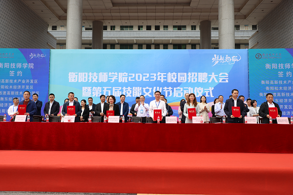 聚力中心化,奮進新征程。5月24日上午,衡陽技師學院2023年校園招聘大會暨第五屆技能文化節(jié)啟動儀式在文化廣場舉行。市人民政府副秘書長胡書偉宣布開幕,學院黨委書記肖春林主持儀式,院長廖與飛致歡迎辭。此次招聘大會共吸引特變電工衡陽變壓器有限公司、衡陽華菱鋼管有限公司、南岳電控(衡陽)工業(yè)技術(shù)股份有限公司、建滔(衡陽)實業(yè)有限公司、湖南勢弘機器人科技有限公司等省市98家企業(yè)來院選才,共提供崗位5000余個,現(xiàn)場達成就業(yè)意向的學生2000余人。