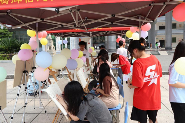 在學(xué)院文化廣場(chǎng)上,“音”你而來(lái)、“N人N足”游戲、“解壓涂鴉”“幸福套圈圈”“心情交換盲盒”等有趣活動(dòng)吸引了數(shù)千名學(xué)生參加,活動(dòng)現(xiàn)場(chǎng)熱鬧不斷。大家積極合作、大膽參與,興奮溢于言表,對(duì)游戲感受頗深。
