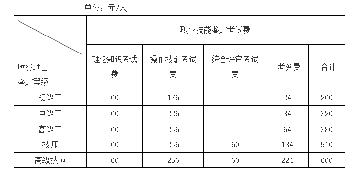 根據(jù)湖南省人力資源和社會保障廳文件《關于公布我省職業(yè)技能鑒定收費標準的通知》(湘人社規(guī)[2024] 3號)精神,
