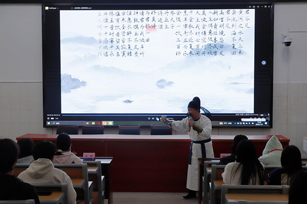 “君不見黃河之水天上來,奔流到海不復(fù)回!”宣講團成員曾科身著古裝,手持酒盞,以酣暢淋漓的演繹再現(xiàn)詩仙李白的豪情,在詩韻流淌與角色演繹中,將民族團結(jié)的理念融入歷史情境,不僅展現(xiàn)了中華民族文化的多樣性和包容性,更以創(chuàng)新的形式讓“民族團結(jié)一家親”的主題深入人心。