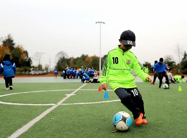 足球小健將進(jìn)行足球練習(xí)
