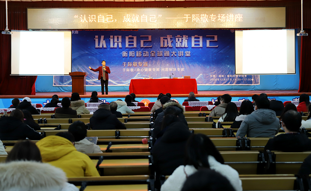 本網(wǎng)訊 12月17日下午,學(xué)院在大禮堂舉辦“全球通大講堂”,特邀身心健康專家、問題解決專家于際敬開展“認(rèn)識(shí)自己,成就自己”專題講座。黨委書記何東球主持講座,院長邱家才、黨委班子成員、各部門負(fù)責(zé)人、黨總支書記及400余名師生代表一起聆聽講座。