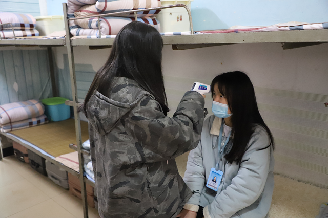 宿舍同學(xué)模擬為發(fā)熱同學(xué)測量體溫