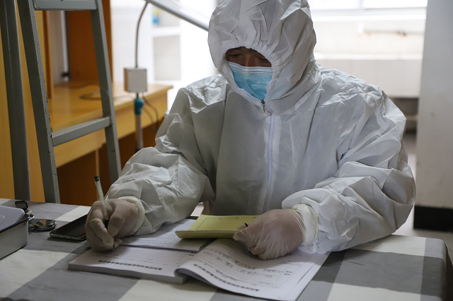 醫(yī)生對疑似學(xué)生體溫測量登記