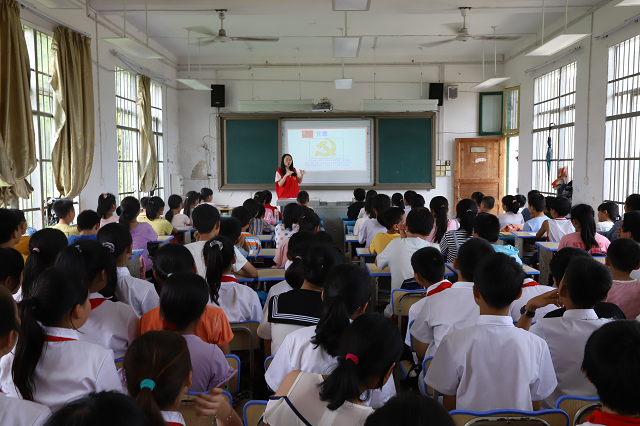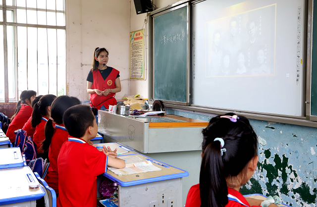 本網(wǎng)訊 為貫徹落實(shí)衡陽市委關(guān)于留守兒童關(guān)愛工程的部署要求,近日,衡陽技師學(xué)院開啟“百千萬‘藝術(shù)童伴’——留守兒童關(guān)愛工程”第二批支教幫扶活動(dòng)。6月8日,該院派出精心挑選的支教老師隊(duì)伍為衡山縣店門鎮(zhèn)中心完小的同學(xué)們上了一堂生動(dòng)的黨史教育課。