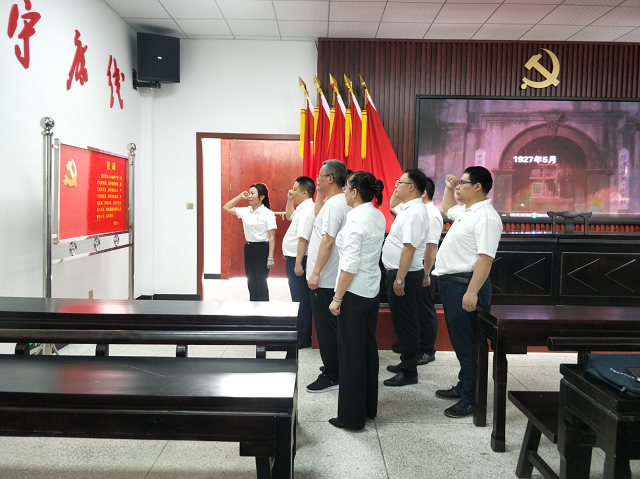“我志愿加入中國共產黨……”大家在蕭石月故居里,高舉右手,莊嚴宣誓,重溫入黨時的決心和信念。追憶革命精神,緬懷紀檢監(jiān)察戰(zhàn)線革命先烈,使命感油然而生。