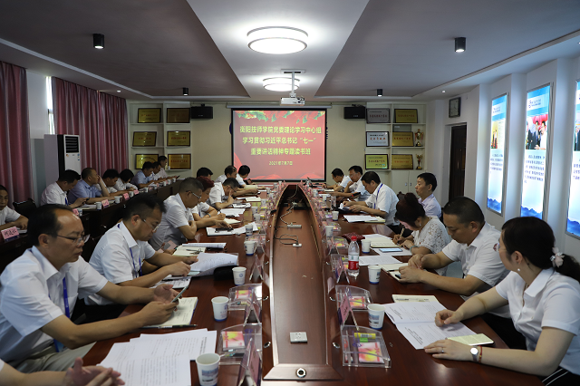 讀書班采取收看收聽?wèi)c祝中國共產(chǎn)黨成立100周年大會實況、個人自學(xué)、專題輔導(dǎo)、研討交流和現(xiàn)場教學(xué)相結(jié)合的方式進(jìn)行。學(xué)院黨委班子成員、各部門負(fù)責(zé)人、系黨總支書記參加學(xué)習(xí)。