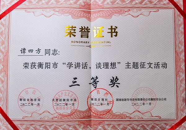 本網(wǎng)訊 3月11日,衡陽市黨史學習教育理論征文暨“學講話,談理想”主題征文評選活動結(jié)果揭曉,我院師生作品喜獲特別獎1項,二等獎1項,三等獎1項,充分展現(xiàn)了學院黨史學習教育的優(yōu)秀成果。