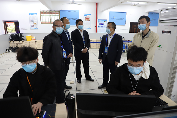 本網(wǎng)訊 4月5日上午,黨委書記肖春林、院長邱家才、黨委委員、副院長劉忠賢來到學院網(wǎng)絡布線項目集訓基地,看望正在備戰(zhàn)第46屆世界技能大賽商務軟件解決方案、移動應用開發(fā)、網(wǎng)絡系統(tǒng)管理三個賽項的參賽選手,了解備賽情況,給參賽選手加油鼓勁。