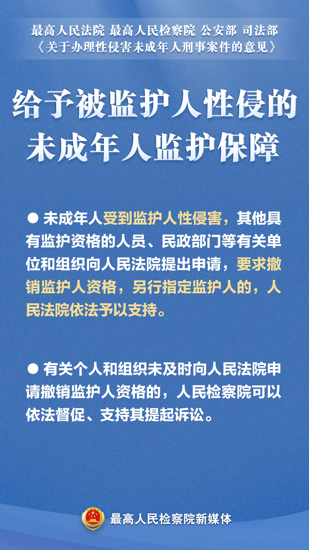 第三十五條 未成年人受到監(jiān)護人性侵害,其他具有監(jiān)護資格的人員、民政部門等有關(guān)單位和組織向人民法院提出申請,要求撤銷監(jiān)護人資格,另行指定監(jiān)護人的,人民法院依法予以支持。