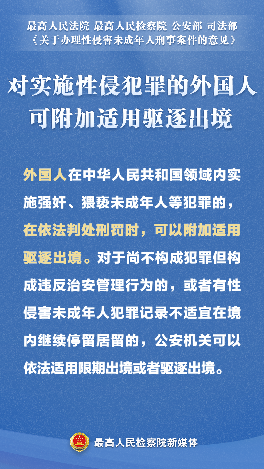 第十九條 外國人在中華人民共和國領(lǐng)域內(nèi)實施強奸、猥褻未成年人等犯罪的,在依法判處刑罰時,可以附加適用驅(qū)逐出境。對于尚不構(gòu)成犯罪但構(gòu)成違反治安管理行為的,或者有性侵害未成年人犯罪記錄不適宜在境內(nèi)繼續(xù)停留居留的,公安機關(guān)可以依法適用限期出境或者驅(qū)逐出境。