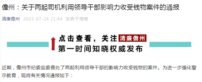 近期,儋州市紀(jì)委監(jiān)委查處了兩起利用領(lǐng)導(dǎo)干部的影響力收受錢(qián)物的案件。為進(jìn)一步強(qiáng)化警示教育,現(xiàn)將有關(guān)情況通報(bào)如下: