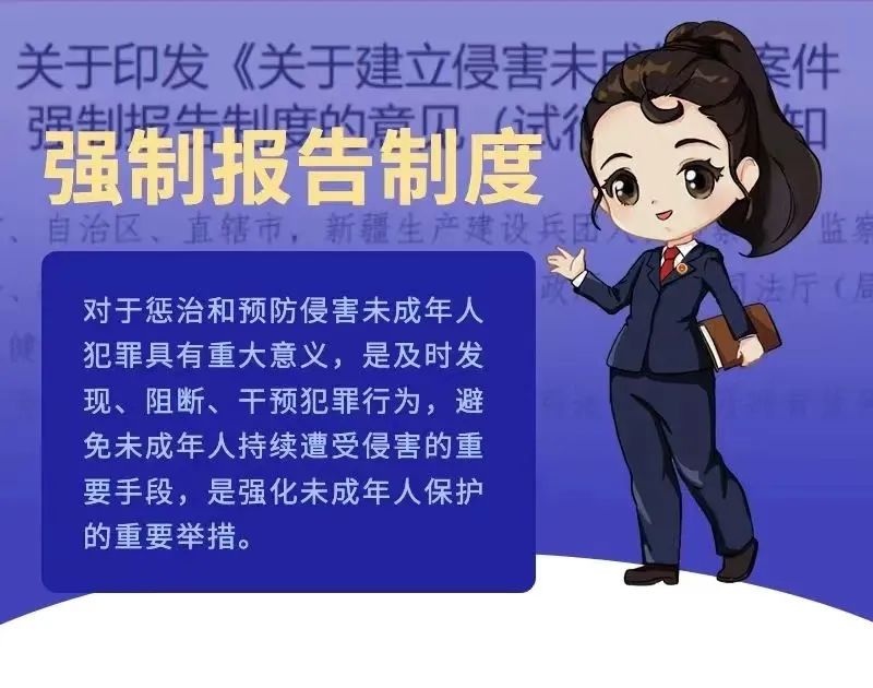 2020年5月,最高人民檢察院、國(guó)家監(jiān)察委員會(huì)、教育部等九部門(mén)聯(lián)合印發(fā)《關(guān)于建立侵害未成年人案件強(qiáng)制報(bào)告制度的意見(jiàn)(試行)》(以下簡(jiǎn)稱“意見(jiàn)”),2021年6月1日開(kāi)始實(shí)施的新《中華人民共和國(guó)未成年人保護(hù)法》從法律層面確認(rèn)了強(qiáng)制報(bào)告制度,對(duì)加強(qiáng)未成年人的全面綜合司法保護(hù),及時(shí)有效懲治侵害未成年人違法犯罪起到重要作用。