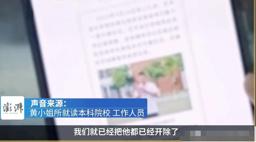 最令人不解的是黃小姐的母校對(duì)廖老師的態(tài)度,盡管已經(jīng)開除了廖老師,但學(xué)校卻對(duì)他在其他學(xué)校的任教選擇視而不見