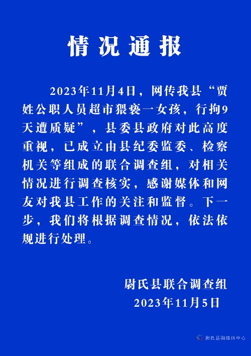 尉氏縣賈姓公職人員超市猥褻女孩,行拘9天遭質(zhì)疑