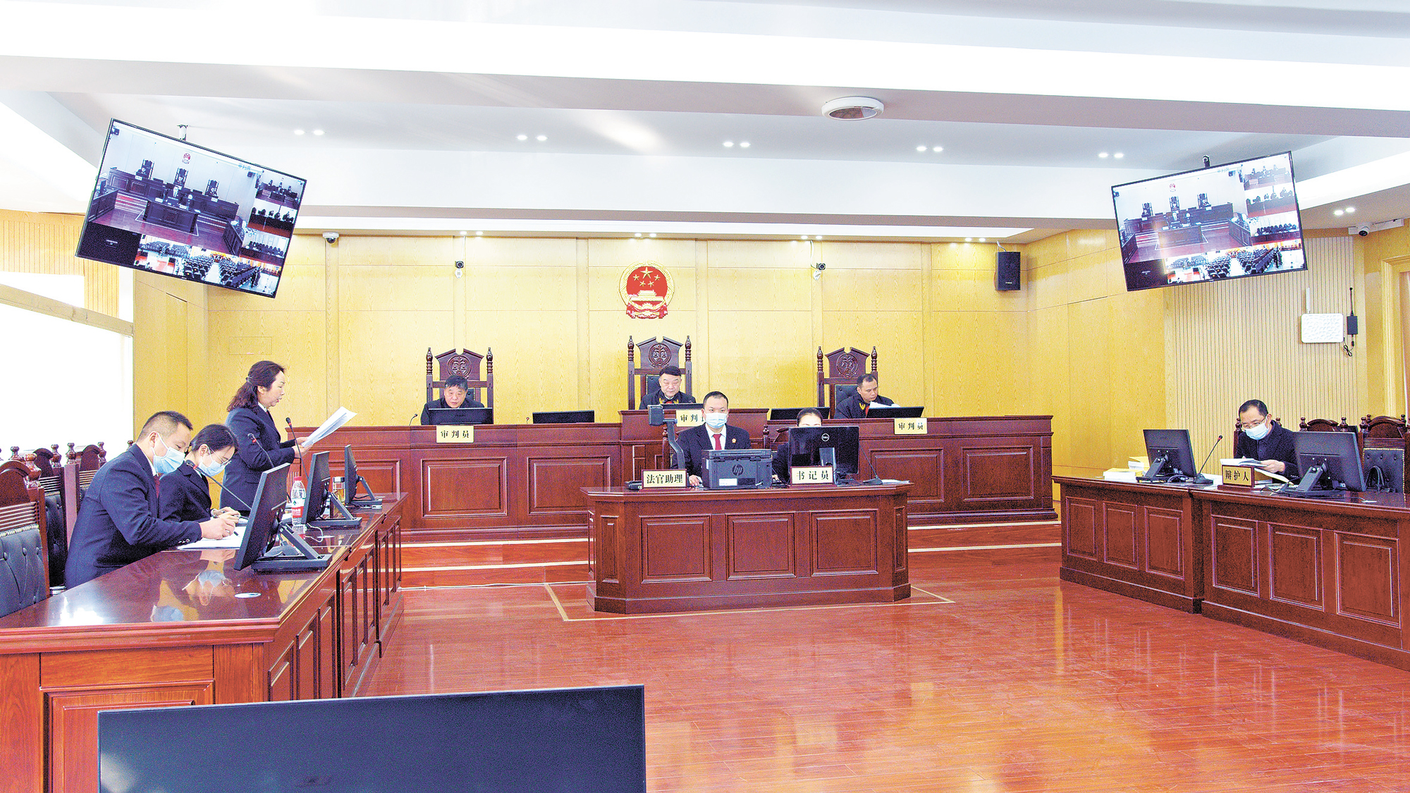 2022年2月25日,劉光海受賄、國(guó)有公司人員濫用職權(quán)、串通投標(biāo)、巨額財(cái)產(chǎn)來源不明一案開庭審理,圖為庭審現(xiàn)場(chǎng)。(隨州市紀(jì)委監(jiān)委供圖)