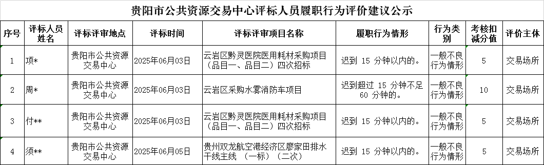 附件:貴陽市公共資源交易中心評(píng)標(biāo)人員履職行為評(píng)價(jià)建議公示