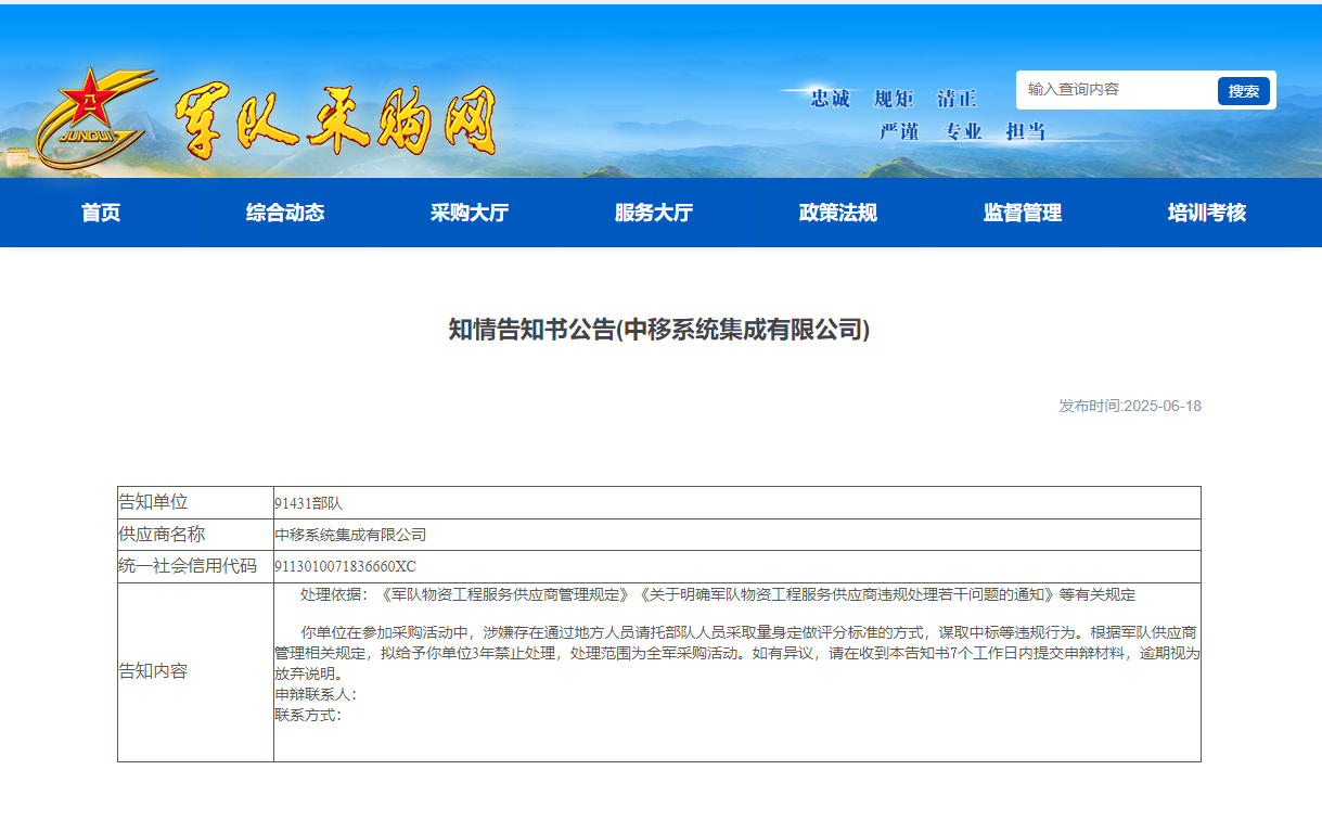 為自己“定制招標” 央企子公司被軍隊采購“拉黑”三年