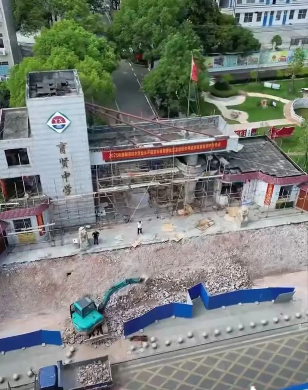 正在修繕中的育賢中學(xué)校門 圖片來源:澎湃新聞