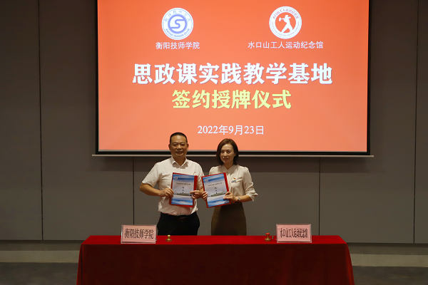與往常不同的是,這次學(xué)習(xí),中心組成員走出會議室,走進紅色教育基地,將理論學(xué)習(xí)主題與學(xué)院思政工作相結(jié)合,切實把學(xué)習(xí)成效轉(zhuǎn)化為做好思政工作的生動實踐。現(xiàn)場學(xué)院與常寧水口山工人運動紀(jì)念館舉行共建思政課實踐教學(xué)基地簽約掛牌儀式。