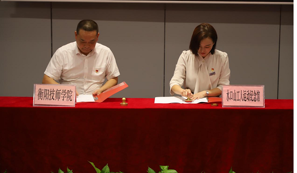 9月23日,衡陽技師學(xué)院與常寧市水口山工人運(yùn)動(dòng)紀(jì)念館在館內(nèi)舉行共建思政課實(shí)踐教學(xué)基地簽約授牌儀式。衡陽技師學(xué)院黨委書記肖春林,黨委副書記、院長廖與飛,常寧市委書記吳樂勝,常寧市委副書記、市長羅衛(wèi)華,常寧市委副書記、統(tǒng)戰(zhàn)部部長鄒雄杰等領(lǐng)導(dǎo)出席,羅衛(wèi)華主持儀式。