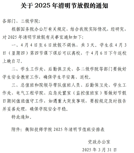 轉(zhuǎn)發(fā):衡陽(yáng)技師學(xué)院清明節(jié)放假通知