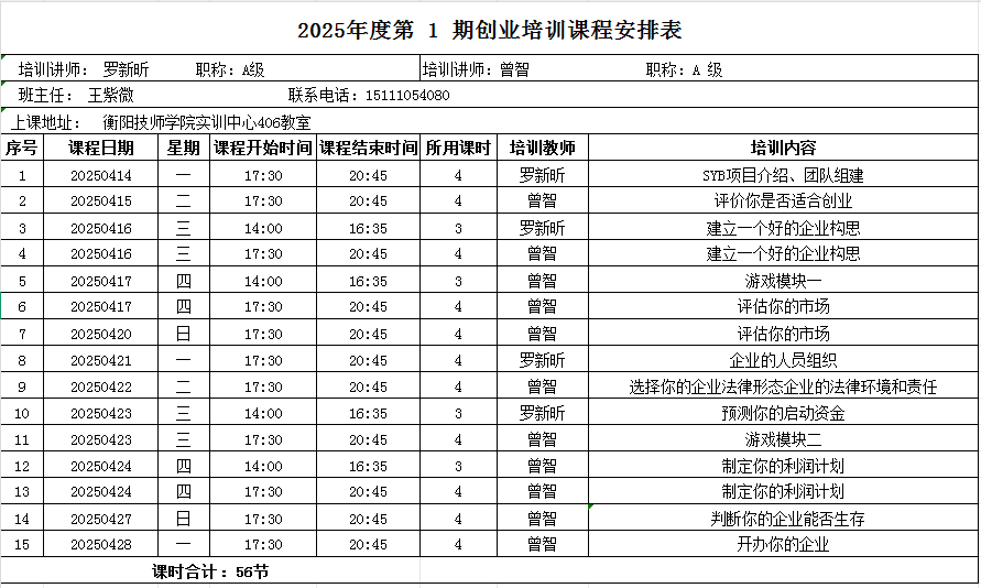 創(chuàng)業(yè)培訓(xùn)課程安排表