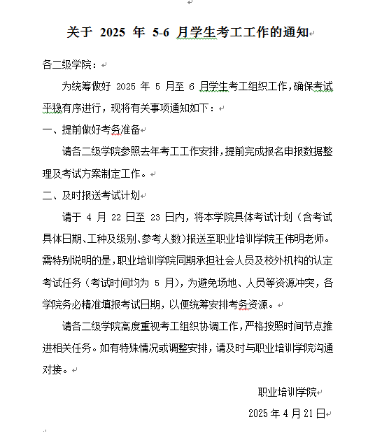 最新!籌做好 2025 年 5 -6 月份學(xué)生考工組織工作